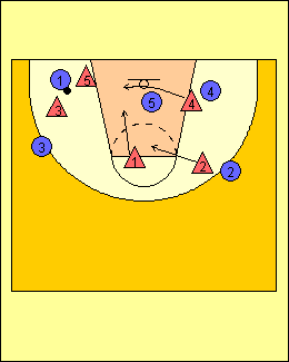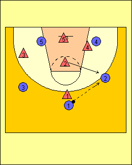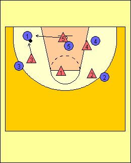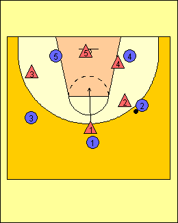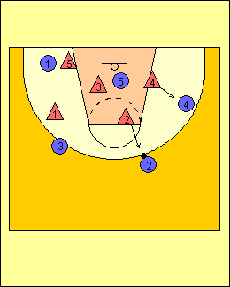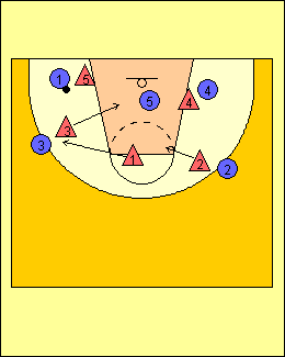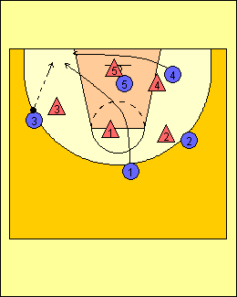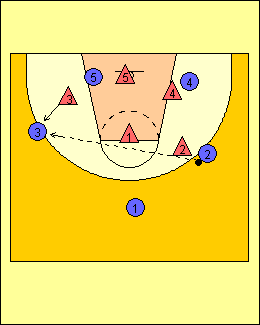 ![]() | 特別的地方從這裡開始。如果B2傳大角給B3,在罰球線以下,R3就要去守B3。 |